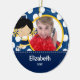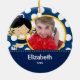 Enfeites de natal azuis & amarelos bonitos datado da foto dos aplausos do cheerleader. Um presente do Natal da maravilha sure a ser estimado por muitos próximos anos.