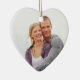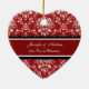 Ornamento da foto do Natal dos casais ø customizável com seus próprios foto, nomes e data no vermelho elegante, cor damasco floral clássica preto e branco. Uma maneira à moda de decorar sua árvore ou casa de Natal para os feriados. A maneira perfeita de recordar junto seu primeiro Natal como um casal.