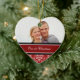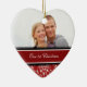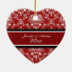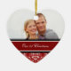 Ornamento da foto do Natal dos casais ø customizável com seus próprios foto, nomes e data no vermelho elegante, cor damasco floral clássica preto e branco. Uma maneira à moda de decorar sua árvore ou casa de Natal para os feriados. A maneira perfeita de recordar junto seu primeiro Natal como um casal.