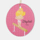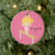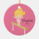 Personalize os enfeites de natal louros pequenos bonitos datado da menina do gymnist ajustados em um fundo cor-de-rosa das bolinhas com um feixe de equilíbrio. Um presente do Natal da maravilha sure a ser estimado por muitos próximos anos.
