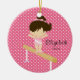 Personalize os enfeites de natal triguenhos pequenos bonitos datado da menina do gymnist ajustados em um fundo cor-de-rosa das bolinhas com um feixe de equilíbrio. Um presente do Natal da maravilha sure a ser estimado por muitos próximos anos.