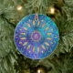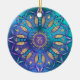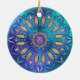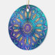 O verde azul metálico dos enfeites de natal A da mandala do Capricórnio do sinal do zodíaco e o fundo roxo da lavanda com uma mandala colorida e o símbolo astrológico para o zodíaco assinam o Capricórnio a cabra no centro.