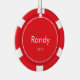 Estes enfeites de natal vermelhos customizáveis da microplaqueta de póquer podem ser personalizados com um nome e o ano. Fazem um grande presente do stuffer ou do Natal da meia.