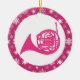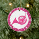 Os enfeites de natal cor-de-rosa bonitos da trompa francesa do floco de neve fazem um stuffer perfeito da meia para o jogador de chifre em sua orquestra, banda ou banda do palco, e têm o fundo do feriado do floco de neve com um instrumento cor-de-rosa da silhueta do chifre.