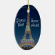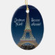 Torre Eiffel da fantasia do NATAL A da TORRE EIFFEL contra o céu do nighttime e as luzes de Paris abaixo com Feliz Natal e feliz ano novo um francaise do la.