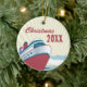 Pegando um Cruzeiro de Natal? Ou quer manter vivas suas memórias de cruzeiro? Personalize este ornamento de cruzeiro do estilo vintage art deco com seu próprio texto como recordação das suas férias de cruzeiro. Memorialize seu Natal tropical ou diversão de família, estilo retrô.