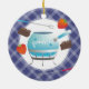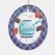 Mude a cor do fundo destes enfeites de natal culinários do partido bonito do fondue para amantes retros, cozinheiros, cozinheiros chefe e foodies. Pote do Fondue com forquilhas, morangos e chocolate com fundo do guingão.