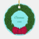 Ornamento datado. (Seja certo incorporar a data desejada na parte traseira!) o arco de um navio de cruzeiros do larte cercado por uma grinalda verde com um arco vermelho