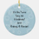 Os afro-americanos Twin Boys 1rua de Natal personalizável ornamento de manutenção com dois meninos dormindo em dormentes azuis, e um design de floco de neve macio. Você pode personalizar facilmente este ornamento com sua foto de gêmeos e adicionar seu próprio texto ao verso. É excelente como presente de Natal de 1rua e será recordação para os próximos anos.