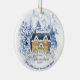 Passar o Natal em sua nova casa é sempre um monente especial. Por que você não o torna memorável com um Enfeites de natal personalizado impresso com seu nome familiar e uma casota pintada manualmente com neve coberta de aquarela com um telhado azul bonito? Isto também pode ser um presente para um casal que acabou de se mudar para o seu novo lugar.