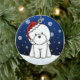 Enfeites de natal bonitos de Bichon Frise, tirados em desenhos animados do kawaii! Esta raça adorável do cão está vestindo um chapéu vermelho do papai noel, e os flocos de neve estão caindo toda em torno dele. Absolutamente querido, perfeito para a árvore do Xmas do amante do cão!