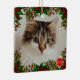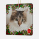 Substitua a foto por uma foto do seu animal de estimação, emoldurada na folhagem de poinsettia com uma notação de ano da bola de Natal. Quadro quadrado.