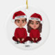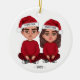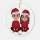 Celebre seu amor nesta temporada de festas com um Enfeites de natal personalizado de bonecas de casal bonitinho apresentando uma ilustração de casal encantadora, nomes personalizados e o ano. Ideal para casais celebrando juntos o seu primeiro Natal ou honrando muitos anos de amor. Este Enfeites de natal personalizado de bonecas de casal bonitinho está vestindo roupas correspondentes, completas com tênis. Esta manutenção de casais foi projetada para fazer sua árvore brilhar com personalização, amor e alegria. **IMPORTANTE - Use o "editor de design para redimensionar gráficos e texto se você estiver escolhendo uma forma de ornamento diferente de redondo ou quadrado. Os gráficos são de grande porte e você pode aumentar ou diminuir o tamanho sem perder qualquer qualidade**.