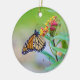 O presente perfeito para um entusiasta de borboletas monarca, este ornamento trará o calor do verão para sua árvore de Natal. Apresenta uma borboleta monarca em cada lado - uma sobre a ordenhada tropical e outra sobre um girassol mexicano.