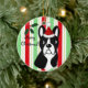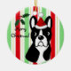O ornamento de vista engraçado de Boston Terrier para Boston Terrier ventila! O Natal listra o teste padrão. Você pode personalizar o texto!