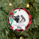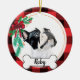 Ornamento de Boston Terrier com fundo de búfalo vermelho e terra natal - Arte foi pintada à mão por mim e disponibilizada como este adorável ornamento! Adicione qualquer texto (sugerido: "Eu ❤️ meu Boston" ou seu nome de docinho) visite www.curella.net para obter um retrato personalizado, adesivos e muito mais.