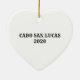 A frente deste ornamento apresenta o arco no Land's End no pôr do sol. Na parte de trás está o texto preto que diz "Cabo San Lucas". você pode personalizar com uma data se escolher.