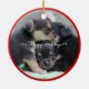Enfeites de natal personalizados para cães com texto e foto de feriados felizes brancos - você pode adicionar sua foto de cachorro. Mede 1,4 onças e 2,87 polegadas. Você pode encontrar design semelhante com fotos personalizadas e texto em outros ornamentos também - quadrado premium de metal, floco de neve de pewter ou ornamento de bola de cerâmica.