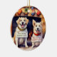 Espalhe um pouco de alegria de férias com este Enfeites de natal adorável com dois filhotes maliciosos! Um cão mostra orgulhosamente um cartaz lendo, "Ele está na lista travessa", enquanto o outro mostra um cartaz dizendo, "Ela comeu a lista travessa." O presente perfeito para amantes de cães e para aqueles que apreciam um pouco de humor de férias.