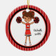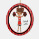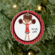 Este é um Enfeites de natal adorável para esse cheerleader na sua vida! É um cheerleader giro com cabelo castanho em caudas de porco. Ela está segurando dois pom nas mãos. Ela está vestindo um uniforme vermelho com branco e preto. Ela está ligada a um grande círculo interno branco esboçado em vermelho e preto. O fundo é listras vermelhas escuras e claras. Veja os muitos outros designs e cores nesta linha. Mantenha essa vigilância por muitos, muitos anos! ©crafty