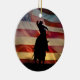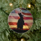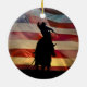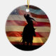 Este é um belo ornamento de Feriado Ocidental do país, com um vaqueiro e uma bandeira americana ao fundo. Um fã de rodeio, ocidental, cowboy ou sertanejo vai adorar este ornamento da árvore de Natal. Faz um presente memorável também, apenas adicione um dos sacos de presentes!