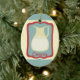Retrai o cozinhar do café da manhã ou série de panificação Os enfeites da árvore de Natal para decoração saborosa! Este é um jarro creme sobre um fundo decorativo vermelho e azul.