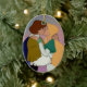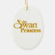Ornamento dado forma oval da árvore de Natal que caracteriza abraçando caráteres animados, princesa ODETTE e princesa Derek, da princesa da cisne. A parte traseira do ornamento tem o logotipo da princesa da cisne.