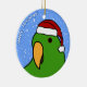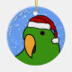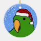 Ornamento de Solomon Island Eclectus dos desenhos animados do pássaro masculino em verde-claro. Veste um boné do papai noel, e o texto lê, "boas festas!" Ornamento do amante do papagaio do divertimento.