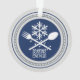 Mude a cor deste bom Enfeites de natal para chefs e foodies, com um grande floco de neve, utensílios comendo com luzes de férias e mensagem alegre, perfeito para a sua árvore temática gourmet, restaurante ou decoração de restauração.