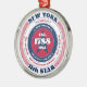 Mostre seu orgulho de Estado nesta temporada de festas com este Enfeites de natal exclusivo dedicado a Nova York, o estado 11. Tem cores patrióticas vermelhas, brancas e azuis com design de tipografia circular em fundo branco. O texto inclui fatos sobre o estado, como nome, capital, abreviação de estado, região, fuso horário, coordenadas geográficas, ano de sua soberania e nome do seu residente. É um presente excelente para aqueles que desejam celebrar seu estado ou para aqueles que estão se sentindo nostálgicos sobre seu estado natal.