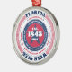 Mostre seu orgulho de Estado nesta temporada de férias com este Enfeites de natal exclusivo dedicado à Flórida, o 27º estado. Tem cores patrióticas vermelhas, brancas e azuis com design de tipografia circular em fundo branco. O texto inclui fatos sobre o estado, como nome, capital, abreviação de estado, região, fuso horário, coordenadas geográficas, ano de sua soberania e nome do seu residente. É um presente excelente para aqueles que desejam celebrar seu estado ou para aqueles que estão se sentindo nostálgicos sobre seu estado natal.