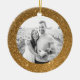 Um quadro moderno de brilho dourado falso brilha neste Enfeites de natal personalizado com sua foto pessoal de um lado e texto modelo do verso facilmente personalizado. Comemorar o ano com este ornamento personalizado ou dar à família como uma única vitória de férias.