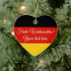 Bandeira alemã personalizada Frohe Weihnachten! Ornamento da árvore de Natal. Decoração personalizada de Natal em X-mas em forma redonda ou cardíaca. Bandeira Patriótica da Alemanha design. Trendy xmas decor para amigos, família, filhos, colega de trabalho, funcionário, chefe, filhos, casal de casamento, recém-casados, mãe e pai, avós, parentes, bebê etc. Adicione a saudação e foto da sua estação no verso, opcionalmente. Modelo de tipografia de script elegante. Dourada cadeia de suavização incluída. Crie a sua guarda para o Natal de 1rua juntos ou outra ocasião.