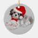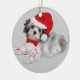 O cão de Havanese que veste o chapéu do papai noel ao guardarar o bastão de doces está disponível em uma variedade de enfeites de natal apenas a tempo para os feriados.