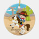 Personalizar e datar um Enfeites de natal de cavaleiro marrom bonitinho de cabelos castanhos em um fundo de areia e montanha com um cacto verde. Um presente de Natal Maravilhoso que certamente será precioso por muitos anos.