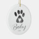 Este Enfeites de natal personalizado com nome e data é um presente excelente para amantes de animais de estimação. Este ornamento para animais de estimação com pata de aquarela é também um memorial perfeito de Natal ou presente para comemorar o seu primeiro Natal.