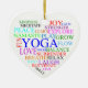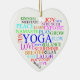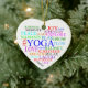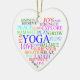 Um adorno gentil com palavras inspiradoras associadas ao ioga, arranjado em forma de coração