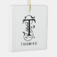 Enfeites de natal de Monograma Elegante T. Monograma elegante e decorativa, letra T em uma paleta colorida preto + branco de tendências, embora todas as cores sejam editáveis! Personalize a parte de trás do ornamento com uma foto. Todas as letras A a Z estão nos arquivos em camadas deste design. Clique em "Personalizar este modelo" e selecione "Editar usando a ferramenta design." Clique no ícone do olho para ativar/desativar as camadas se quiser escolher outra letra monográfica ou criar um ornamento utilizando duas letras monográficas. © Kimbellish, LLC
