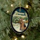 Compartilhe as Férias com seu amigo canino favorito. Estes ornamentos de raças de cães são certamente um começo de conversa de excelente. Cachorro em primeiro plano com a cena de inverno da cabana, pinheiros grandes e neve cobertos de terra no fundo. presente de natal excelente para um amante de cachorro!