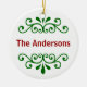Este Enfeites de natal apresenta um design de damasco verde e texto vermelho e pode ser personalizado com o nome e a data de sua escolha. Faz um presente de excelente para professores, colegas de trabalho, vizinhos, amigos, etc!