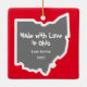 O esboço do estado de Ohio, um fundo de folhas de buchye, um cardeal (nosso pássaro estadual), e os próprios loucos buckeye adoram esse Enfeites de natal espiritual de Ohio. Deixe a mensagem "Made with Love in Ohio" nas costas ou inclua uma nota rápida da sua. Inclua o seu sobrenome e o ano, e você tem uma manutenção que seu destinatário vai adorar por anos! Foto e design por Amanda Renee, CtrlZ Digital Designs Todos os elementos usados com permissão. Buckeyes feitos por Amanda.