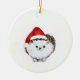 Porte de Natal bonito numa pintura ilustrativa de Santa Hat sobre um ornamento pendurado em cerâmica. Perfeito para amantes de os animais!