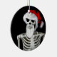 Enfeites de natal único com Papais noeis esqueletos contra fundo preto. Escuro e humorístico para um feriado alternativo!
