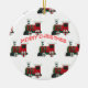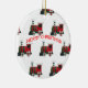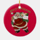 Este ornamento é decorado de um lado com trens e Papais noeis de brinquedos e do outro com Papai Noel e as palavras "Feliz Natal". Uma ideia de presente de excelente.