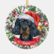 Este sofisticado Enfeites de natal cerâmico Gordon Setter apresenta uma aquarela de um doce Black e Brown Gordon Setter em um chapéu de Papai Noel, rodeado de verdinho, pinecones e bagas, com um banner vermelho com o nome do seu animal de estimação (ou troco para Feliz Natal). Você pode personalizar completamente esta design mudando a saudação e o ano atrás em uma fonte elegante. Este é um Enfeites de natal, ainda que barato, personalizado, e é perfeito para amantes mais discretos, fãs de Gordon setter, amantes de cães caçadores, amantes de cachorros e amantes de animais de estimação.
