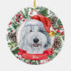 Este sofisticado Enfeites de natal cerâmico de Sheepdog Inglês apresenta um lindo retrato de aquarela de uma cinza e um velho Sheepdog Inglês branco em um chapéu de Papai Noel, rodeado por veraneio, pinecones e bagas, com um banner vermelho com o nome do seu animal de estimação (ou mudar para Feliz Natal). Você pode personalizar completamente esta design mudando a saudação e o ano atrás em uma fonte elegante. Este é um Enfeites de natal personalizado na moda é perfeito para amantes de Ovelhas Cães de Ovelhas Inglês, fãs de Ovina, amantes de cães, amantes de cachorros e amantes de animais de estimação.