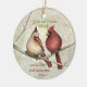 Um Enfeites de natal cerâmico branco com uma pintura de aquarela clássica de A. E. West de um par cardeal.