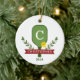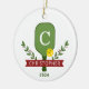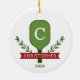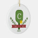 Enfeites de natal de Pickleball Personalizado. Comemore seu ano de piquenique brincando com um adorável ornamento festivo. Personalize com um dentro inicial monograma do remo, assim como adicione seu nome e ano. Mostrada em uma paleta vermelha e verde clássica com uma bola de picleball amarela padrão, mas TODAS AS CORES SÃO EDITÁVEIS POR VOCÊ! Você pode escolher novas cores para o remo, a bola de picles, o holly + bagas, a faixa e o texto. Certifique-se de fazer as mesmas mudanças no outro lado do ornamento. © Kimbellish, LLC