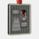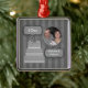 Transfira arquivos pela rede sua própria fotografia a este design listrado de prata monocromático elegante do ornamento da lembrança. Personalize adicionando o ano e os nomes a este 25o ornamento original da celebração do aniversário que está completo com o bolo de casamento de prata que caracteriza do "um chapéu de coco proeminente do bolo 25o aniversário". Este design superior faz um grande 25o presente do aniversário a qualquer hora do ano!