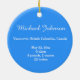 Enfeites de natal de gravações do bebê. Moldura de círculo azul. Para raparigas e rapazes, com data de nascimento, local, hora, nome. Presentes de excelente de festas da nova mãe e pai. Mais: com